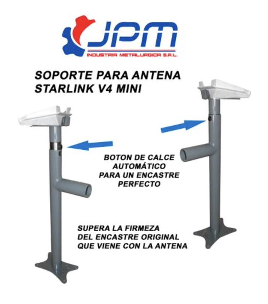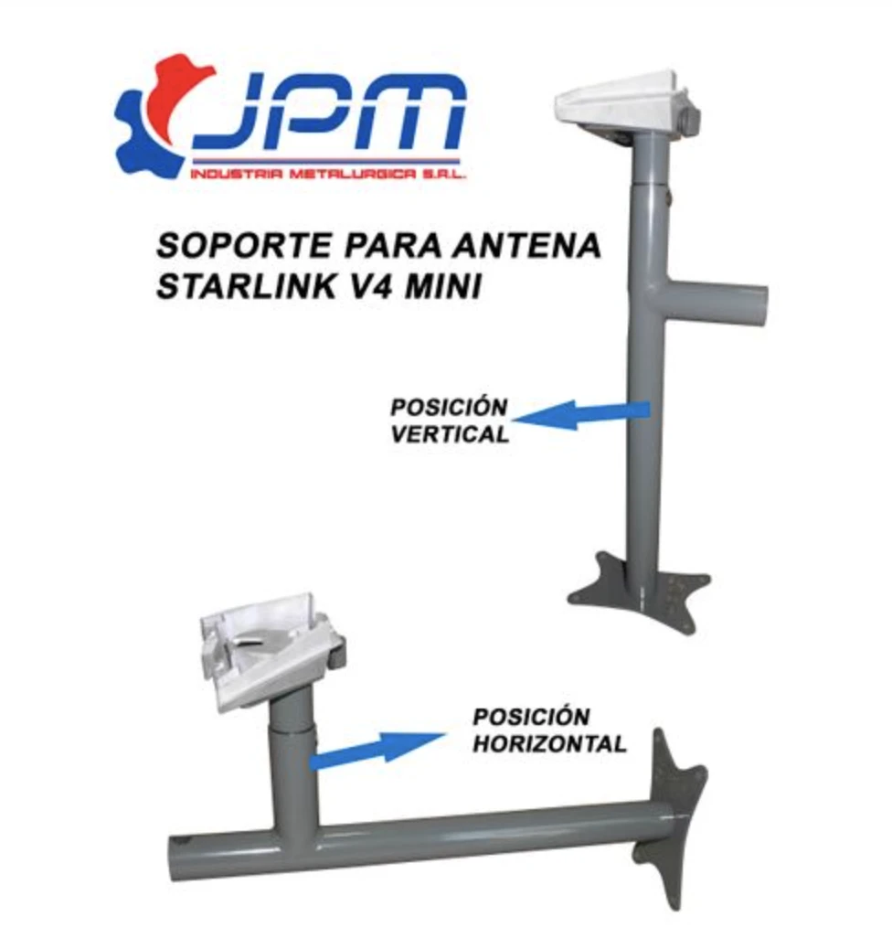El Soporte de Antena Internet Satelital Starlink de la marca JPM Industria Metalurgica SRL es la solución perfecta para garantizar una recepción óptima de señal en tu hogar, motorhome o donde te encuentres. Con un peso de 1600 g, este soporte es resistente y duradero, ideal para uso externo. Su modelo SLV400MINI-JPM ofrece dos posiciones como ningún otro en el mercado, para ajustar la antena según tus necesidades.